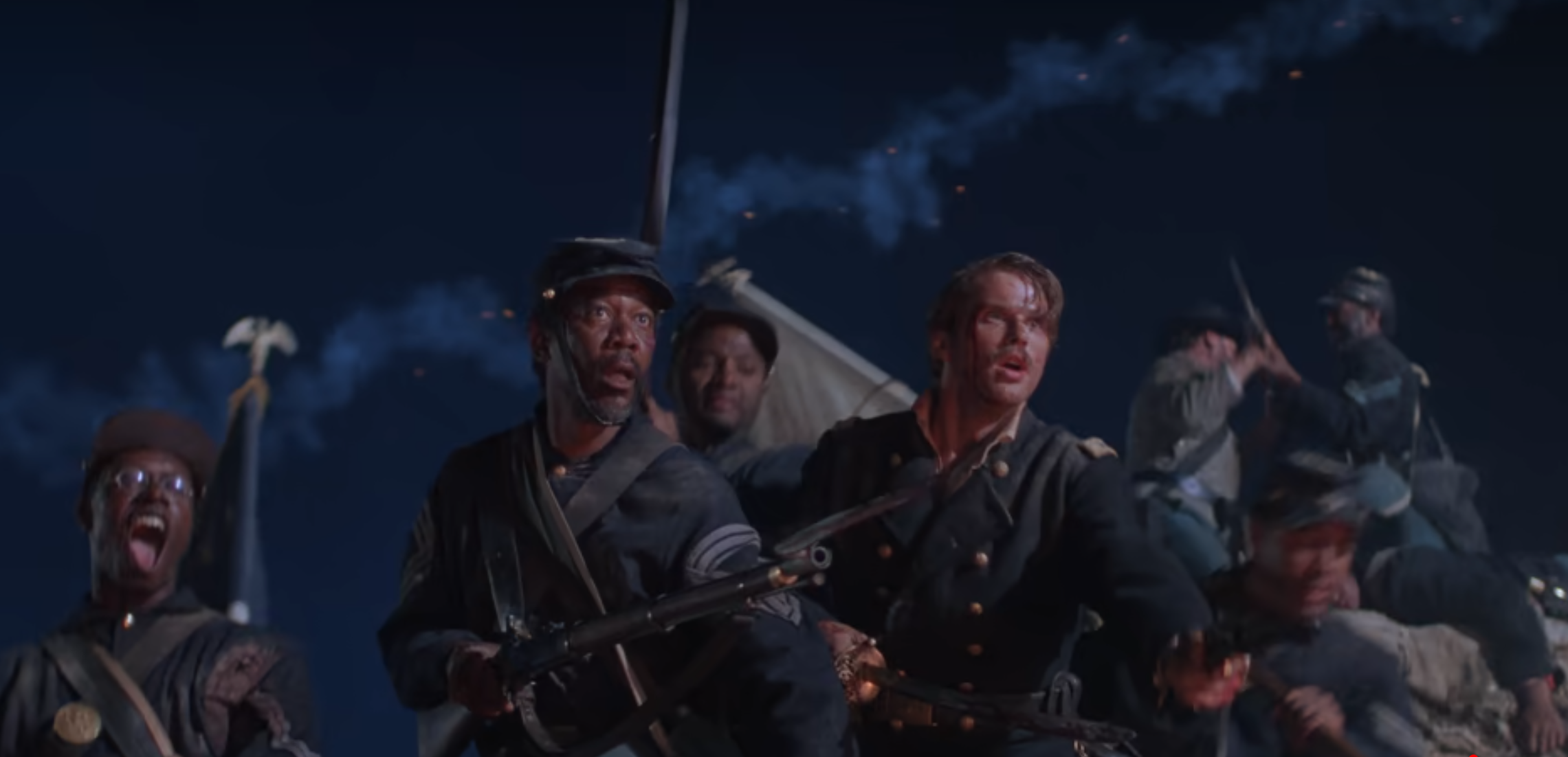 공격이 시작될 때, 흑인 병사들은 전우애와 결의에 찬 모습으로 전장을 향해 진군합니다. 이들은 무자비한 총격과 포격 속에서도 굴하지 않고 전진하는데, 이 모습은 감동적으로 그려지며 관객에게 큰 울림을 줍니다. 특히, 트립이 적의 포화 속에서도 깃발을 높이 들고 돌진하는 모습은 이 영화의 상징적인 장면으로 남아 있습니다. 그의 행동은 단지 전투의 승리를 넘어, 흑인 병사들의 인권과 존엄을 위한 싸움을 상징합니다. 로버트 쇼 대령이 전투에서 전사하는 장면도 매우 감동적입니다. 그는 자신이 지휘하는 병사들과 함께 싸우다가 생을 마감하며, 그의 죽음은 흑인 병사들뿐만 아니라 모든 미국인에게 큰 영향을 미칩니다.