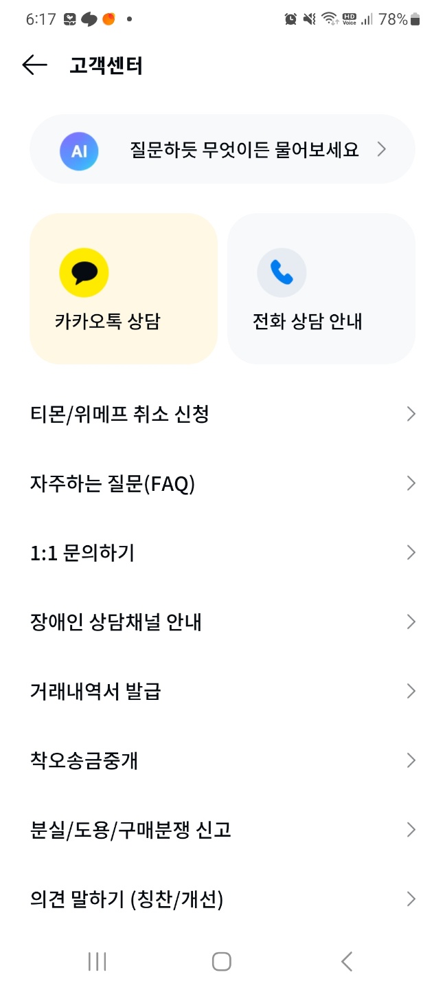 고객센테 문의로 가서 티몬/위메프 취소 관련하여 상품주문번호, 제목, 내용 등을 작성하고, 티몬과 위메프에서의 결제/구매 내역 페이지의 스크린숏(캡처)을 첨부할 경우 48시간 이내에 처리를 해준다고 합니다.